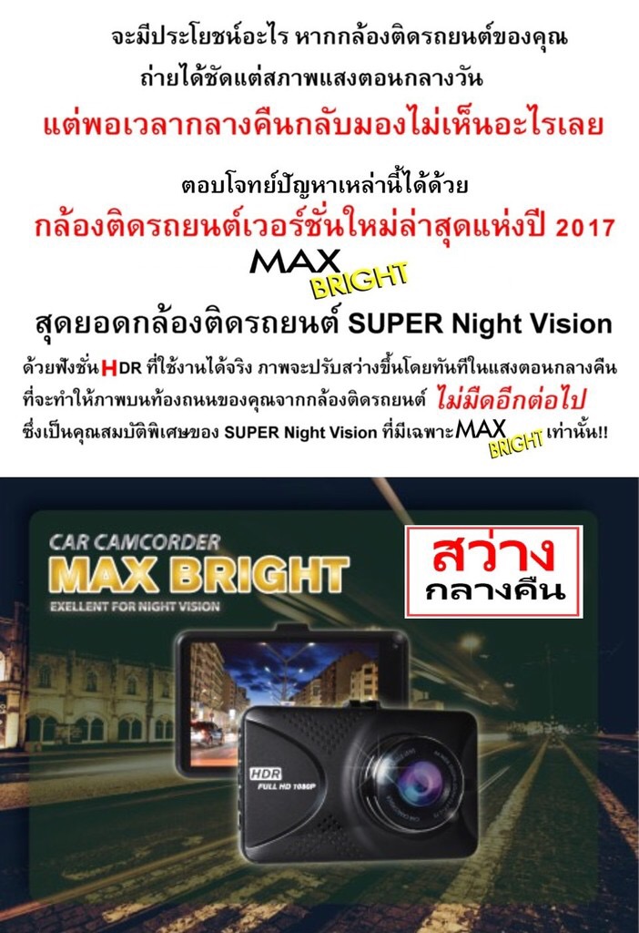 รายการสินค้าในกล่อง : •1 x กล้องติดรถยนต์ รุ่น MAX BRIGHT (Black)