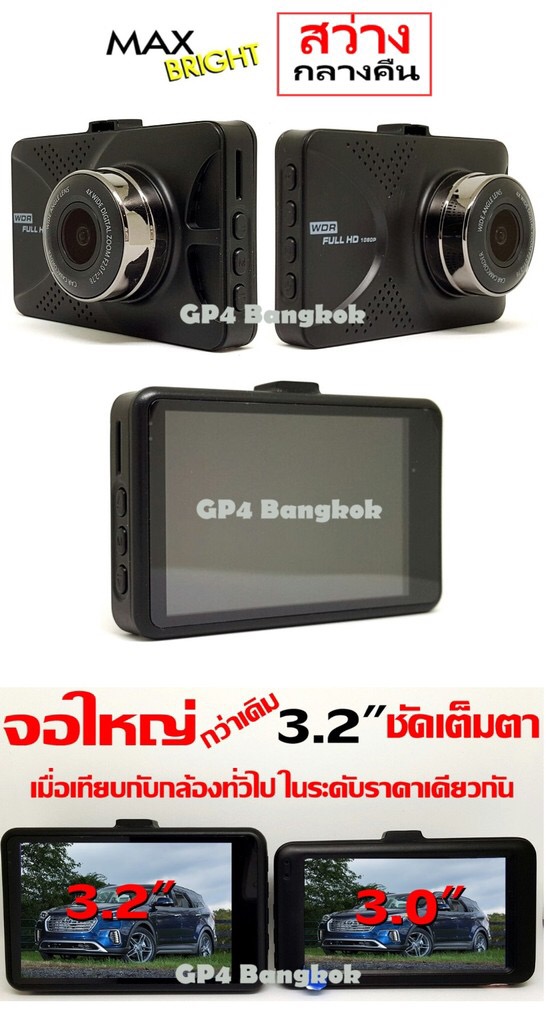 ข้อมูลจำเพราะของด่วนFHD กล้องติดรถยนต์ WDR จอใหญ่ 3.2นิ้ว ดูเต็มตา สะใจ Parking Monitorบอดี้โลหะ รุ่น MAX BRIGHT สว่างกลางคืน (Black)